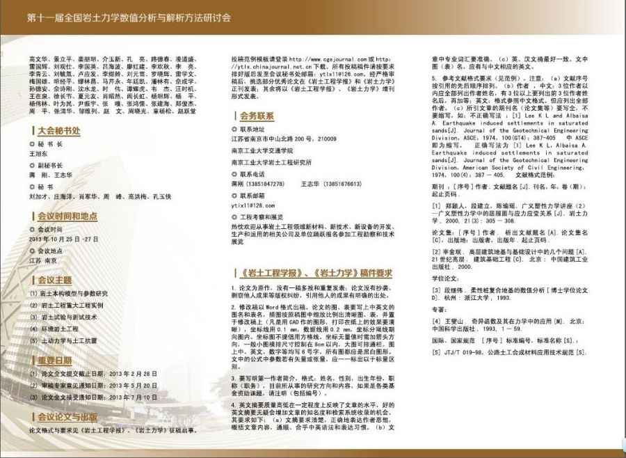 第十一届全国岩土力学数值分析与解析方法研讨会征文通知