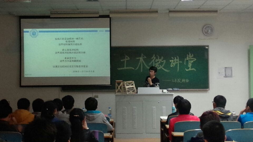 为了充分发挥学生的学习主体地位,提升学生的自主意识和凝聚力,积极实践“以教师为主导,学生为主体”的“双主”特色人才培养模式,太阳集团tyc151从2014年起,在土木大讲堂的基础上,开设旨在充分培养学生主体创新能力和学习意识的“土木微讲堂”活动,该活动由土木与交通学院科协具体承办。