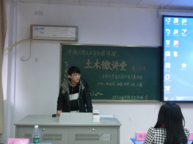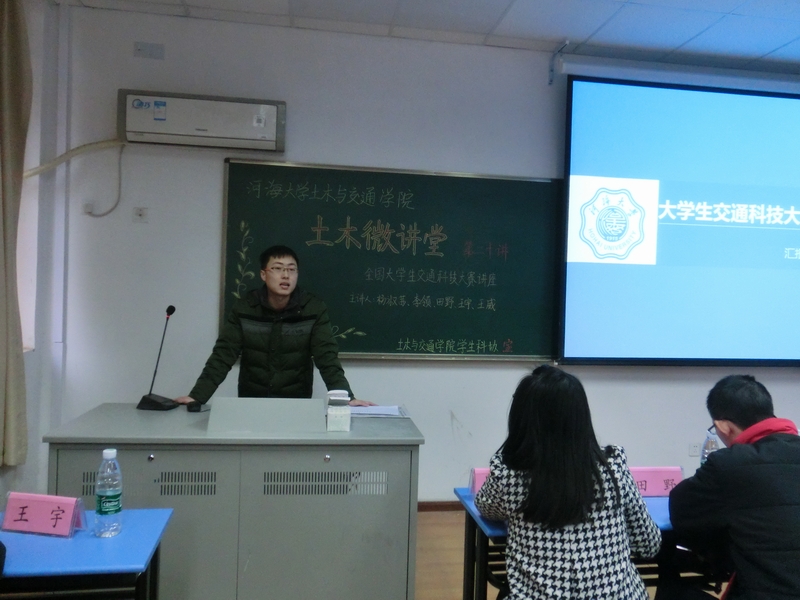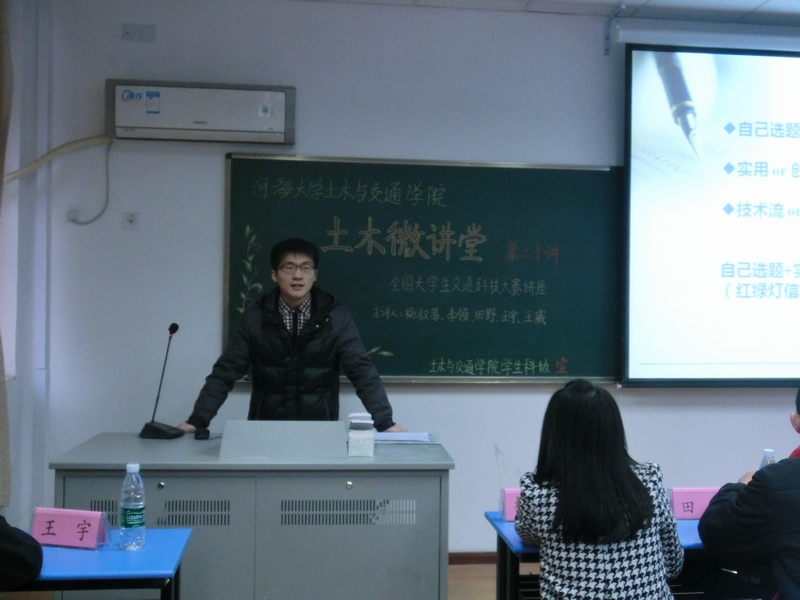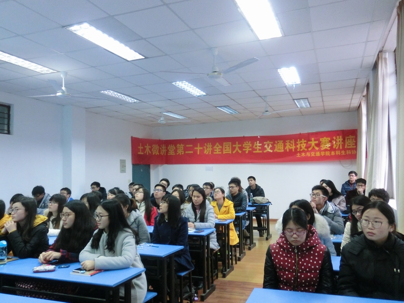 2016年3月8日下午,土木与交通学院“土木微讲堂”第二十讲之“全国大学生交通科技大赛”在本部管理楼305成功举办。本次微讲堂邀请了杨淑茜、李领、田野、王宇以及王威同学作为主讲人,为学院交通工程专业的同学们分享参加全国大学生交通科技大赛的经验。