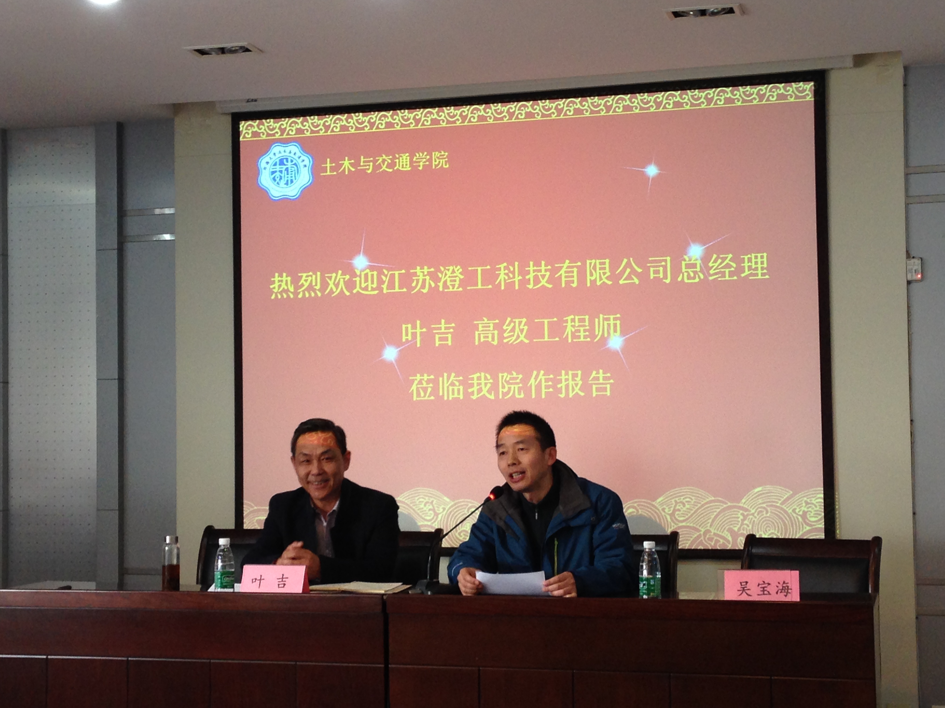 2016年3月10日下午,土木与交通学院于科学馆516举办了题为“地基处理新技术——软弱地基水气分离夯实法”的报告会。报告由江苏澄工科技有限公司总经理、岩土注册高级工程师叶吉主讲。土木院党委吴宝海书记主持报告会,高年级本科生和部分研究生同学参加了此次报告。