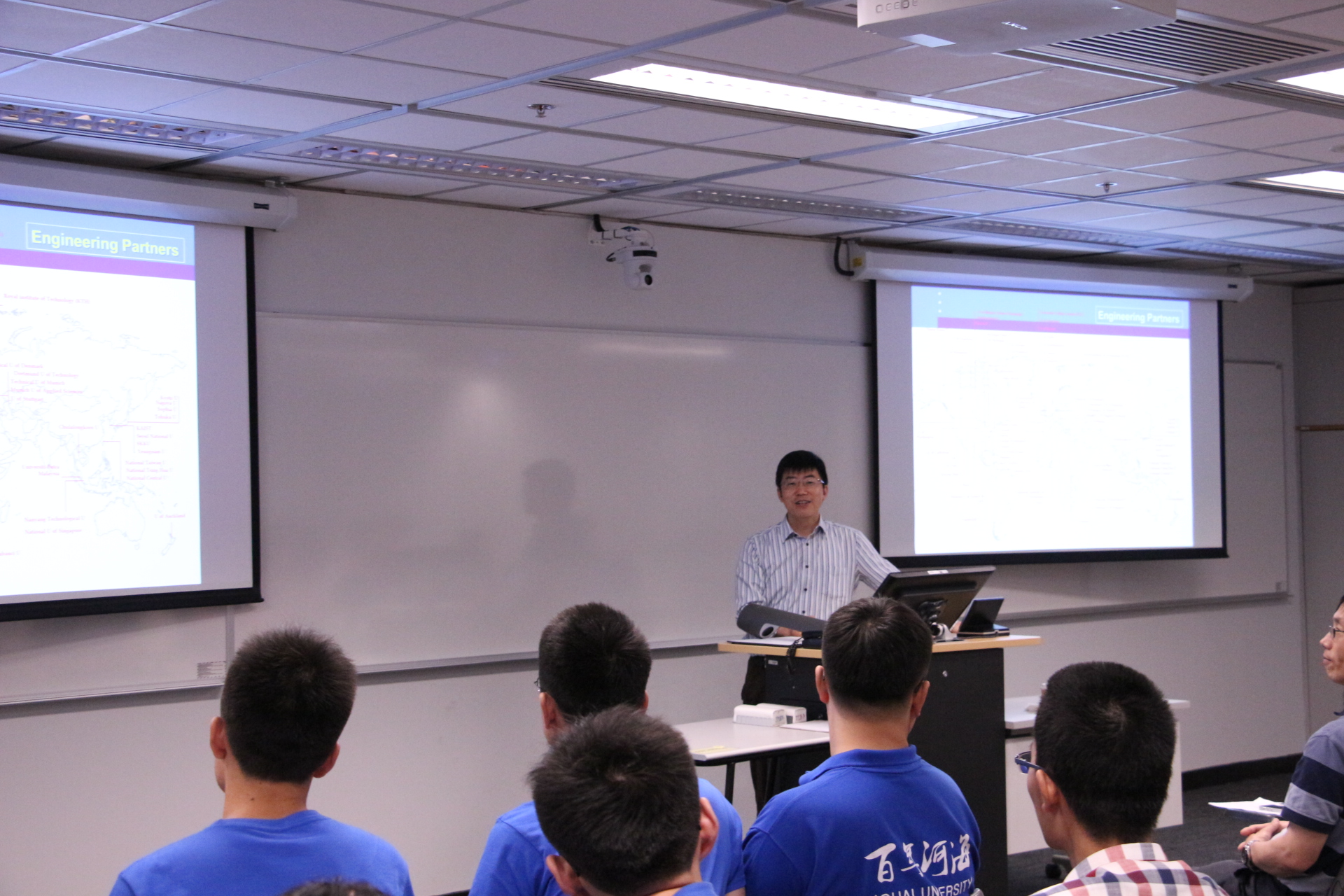 张利民教授和王刚教授对河海分会访港团一行的到来表示热烈欢迎,张教授从学校历史、专业设置和校园设施等方面向河海分会成员介绍了香港科技大学的概况,并就土木工程专业的学习回答了同学们的提问。