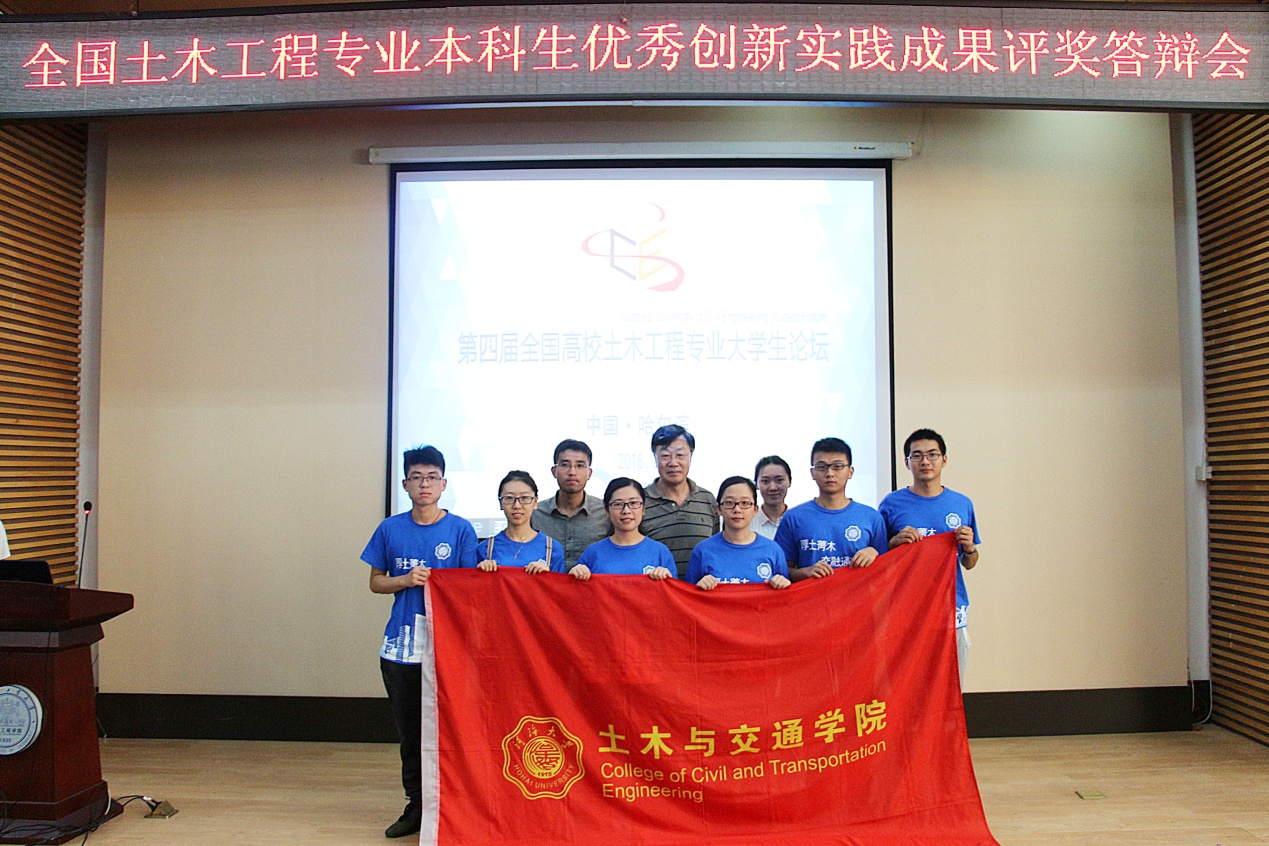 本次成果奖于2016年5月开始评审,通过专家网评,选出来自同济大学、浙江大学、哈尔滨工业大学、河海大学、东南大学、华南理工大学、大连理工大学、武汉大学等14所高校(其中985高校8所,211高校2所)的26项创新成果入围决赛,由各成果组派代表于2016年8 月参加在哈尔滨工业大学进行的现场答辩,并在近日全国土木工程专业指导委员会会议上确定最终获奖名单。我院学生自2012年起,已连续五届在此赛事中斩获一等奖,并在今年更上一层楼,以第一名的成绩获得特等奖。