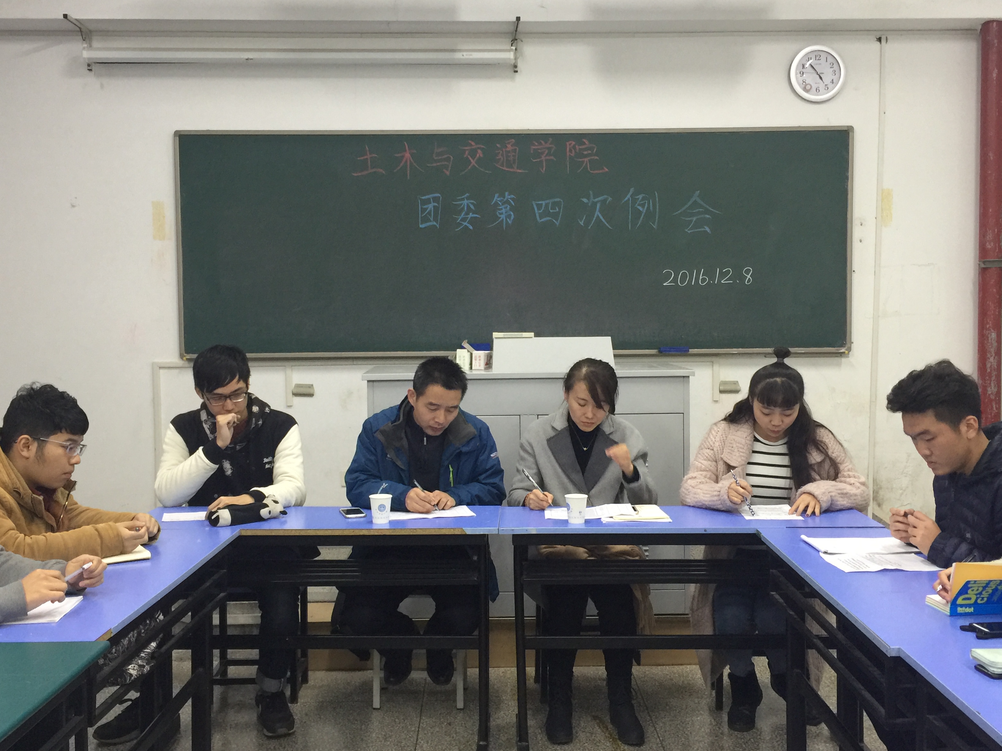 2016年12月8日16:40,土木与交通学院团委本学期第四次例会在致用308进行,学院党委书记吴宝海、15级辅导员王璐老师参加了本次会议。