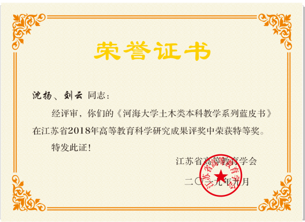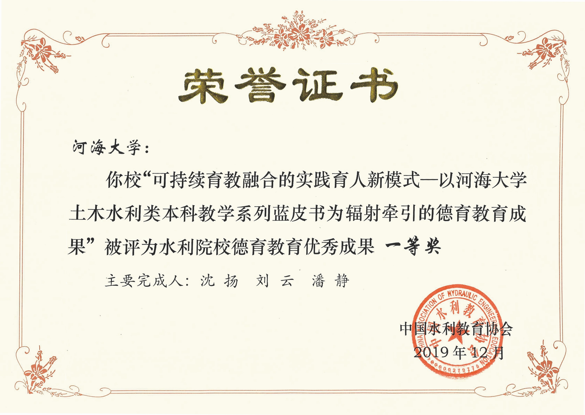 学院打造了新工科背景下新时代土木类本科个性化人才的可持续育教融合质保新体系,并凝练为全国土木类专业中首套供大学四年全教学环节使用的《河海大学土木类本科教学系列蓝皮书》(1套7部、150多万字),先后获江苏省高等教育科学研究成果奖特等奖和首届全国水利德育教育优秀成果一等奖等重要荣誉,目前为河海大学所有专业仿效,并在全国100余所高校的教学职能部门和学院专业中推广辐射。