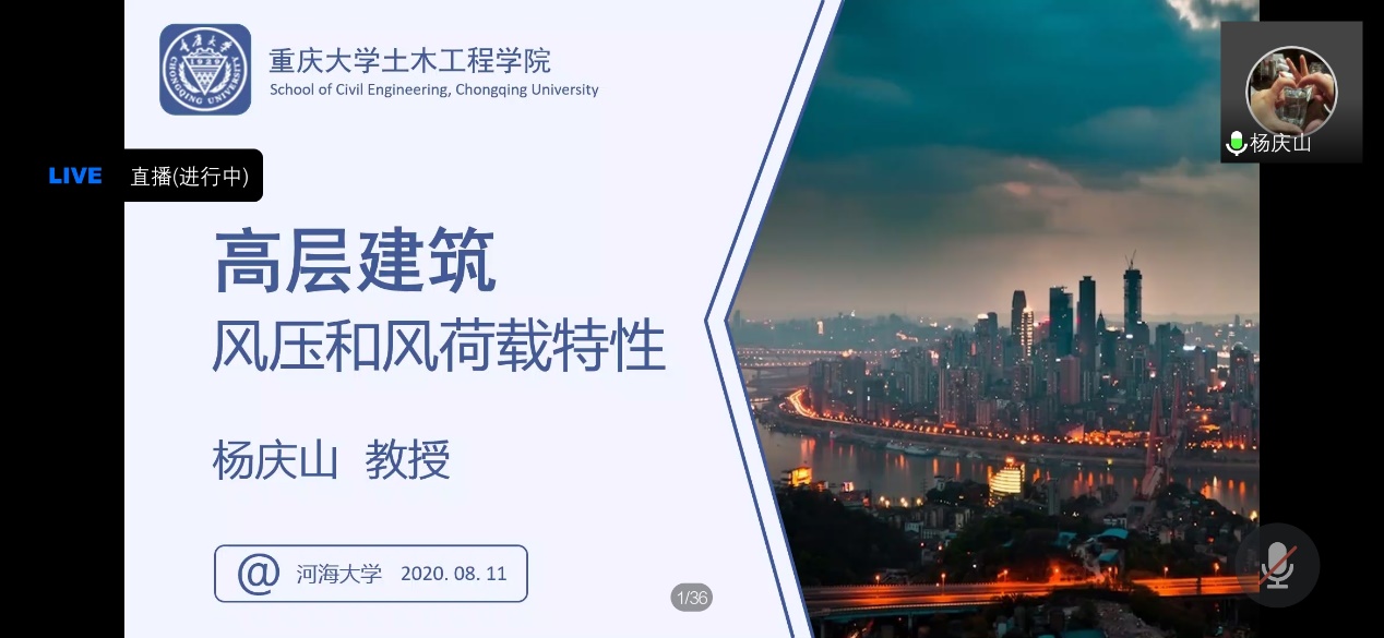 8月11日是2020年江苏省研究生“岩土工程与结构安全”暑期学校的第二天。上午的首场授课专家是重庆大学土木工程学院院长杨庆山教授。他作了题为《高层建筑风压和风荷载特性》的报告,报告会由太阳集团tyc151姬建教授主持。杨庆山教授介绍了结构风效应过程中的一些基础概念,主要从风速与迎风面脉动风压,迎、背和侧风面脉动风压,各面同层脉动风压以及同层三分量脉动风力四个方面为学员们详细介绍了高层建筑受风荷载作用的相关知识。杨教授精彩的报告吸引了众多学员的热情互动,针对学员们提出的脉动风压、结构抗风设计、风荷载对结构基础的影响等专业问题,杨教授也做了耐心、详细的回答,学员们受益匪浅,并报以热烈的掌声。