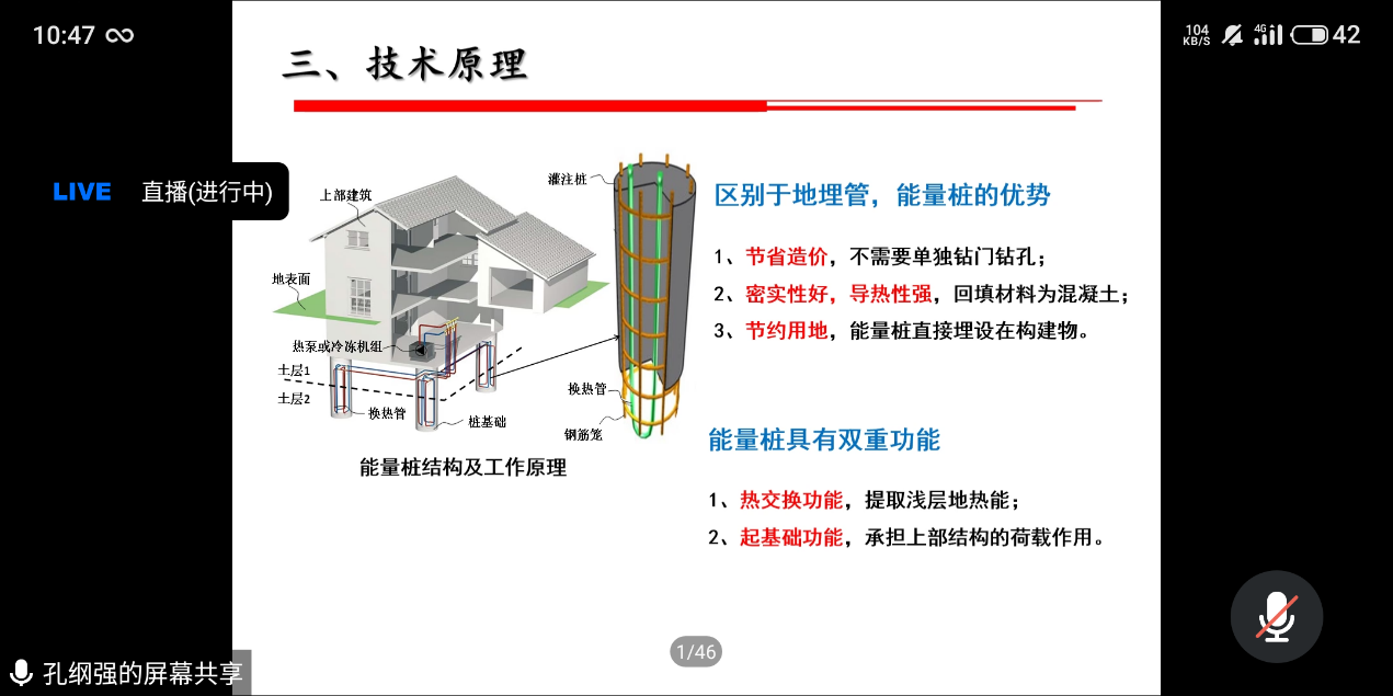 第二场主讲人为太阳集团tyc151孔纲强教授,孔教授用生动而又风趣的语言对能量桩结构及技术原理进行了详细的介绍。结合典型工程案例,孔教授让学员们认识到能量桩在市政路面工程除冰融雪、建筑空调节能系统、高铁隧道温控系统和地下电力隧道温控系统中均可以得到较好的工程应用,是一项节能减排的绿色环保技术。孔教授汇报完毕后,与线上线下的学员们就能量桩耐久性进行了热烈地讨论,对能量桩是否会在循环荷载作用下产生疲劳破坏这一问题进行了细致的解答,最后为学员们解决了温差和能量桩中埋设的管道对能量桩应力计算的影响这一疑问。孔老师将科研和工程结合的实干风格感染了暑期学校的同学们,在大家的掌声中结束了第二场讲座。