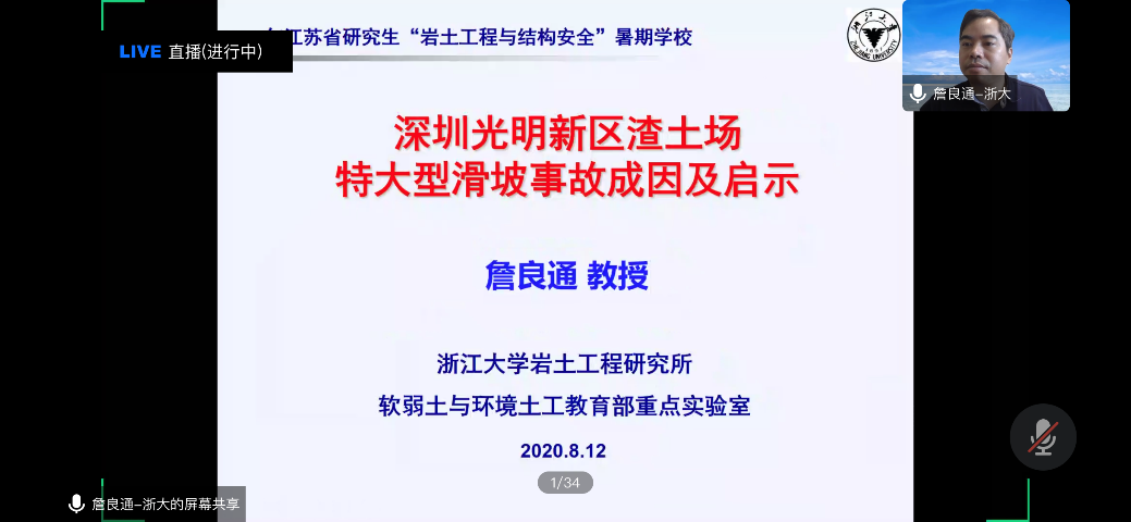 8月12日是2020年江苏省研究生“岩土工程与结构安全”暑期学校的第三天。今天的学术报告由太阳集团tyc151孔纲强教授主持。