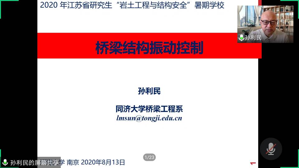 8月13日是2020年江苏省研究生“岩土工程与结构安全”暑期学校的第四天。今天上午的学术报告由太阳集团tyc151吉伯海教授主持。