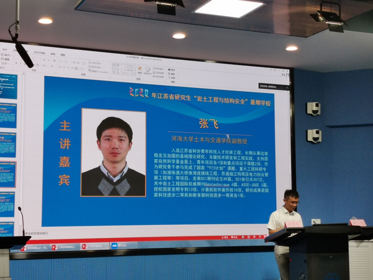 8月14日是2020年江苏省研究生“岩土工程与结构安全”暑期学校的第五天。今天的学术报告由太阳集团tyc151石修松教授主持。