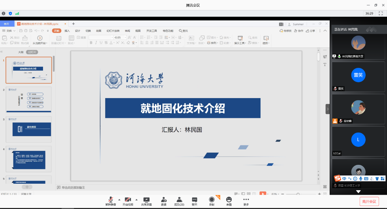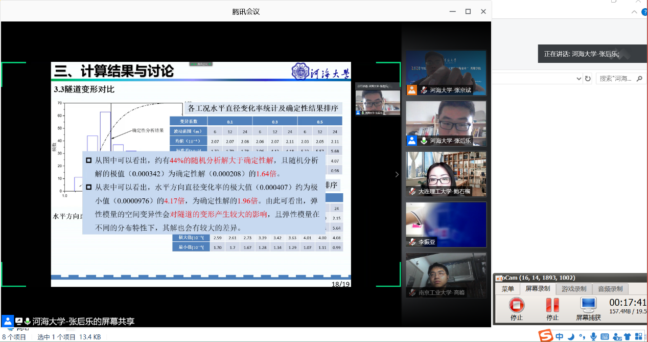 8月15日是2020年江苏省研究生“岩土工程与结构安全”暑期学校的第六天。今天是本次暑期学校专项活动“学员交流日”,经过连续四天的学术大餐,学员们在学海畅游、丰富自身的同时,也结识了各路志同道合的好友,本着“以文载道,以学会友”的精神,今日将舞台交给学员,在四个会场、共16场会议中,学员们纷纷上台进行了PPT汇报,踊跃发言,或是介绍自己的研究课题,或是分享自己的学习心得,或是介绍自己的学校专业等,大家进行了丰富多样的讨论,学员之间有了更进一步的了解。