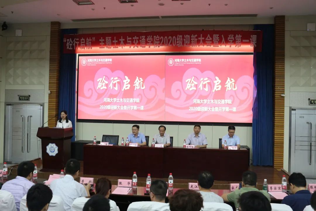 2020年9月10日上午10:00,土木与交通学院“砼行启航”2020级本科生新生迎新大会暨开学第一课在江宁会议中心二楼报告厅顺利举行。院党委书记汪建新、院长高玉峰教授、副院长朱其志教授、副院长刘云副教授、院党委潘静副书记出席了本次会议。土木工程、交通工程系主任、20级班导师、教学秘书、全体本科生辅导员、班导师助理以及2020级全体同学参加了本次大会。