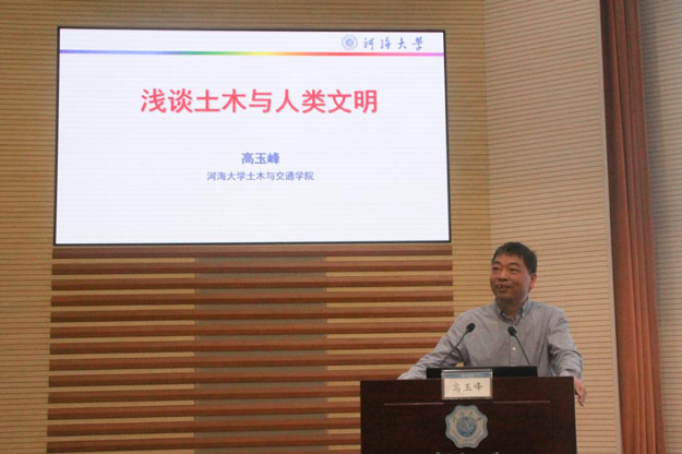 大会的第二项议程,院长高玉峰教授以“浅谈土木与人类文明”为题向新生们讲授开学第一课。围绕“从一个土木人的视角看中华文明”这一话题,高院长列举了一系列由土木人创造的灿烂古代文明与现代文明,生动阐明了土木的最高层次是文明,并结合促成良渚申遗的亲身经历讲述了传承人类文明与土木工程、交通工程的密切联系,勉励同学们要学以致用,不断提高专业素养,做一个自信的中国人。