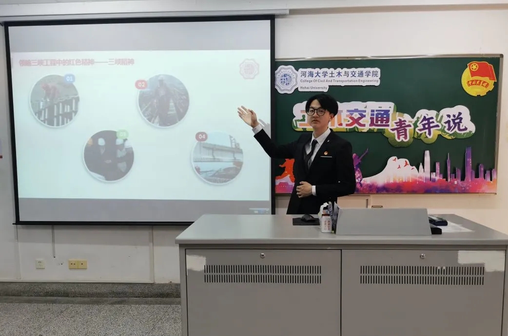 为贯彻落实习近平总书记在党史学习教育动员大会上的重要讲话精神,引导学院青年学生结合所学专业知识,探索大国工程中的红色精神,做新时代红色基因土木人,土木与交通学院于2021年3月23日在江宁校区致用楼203开展了以“聚焦大国工程,传承红色精神”为主题的“土木交通青年说”主讲人微课。五位2019级曾参与红色工程专项实践调研的同学为大家分享了他们的调研成果及感悟。学院团委书记2019级辅导员王璐老师及2019级、2020级部分本科生参与了本次活动。