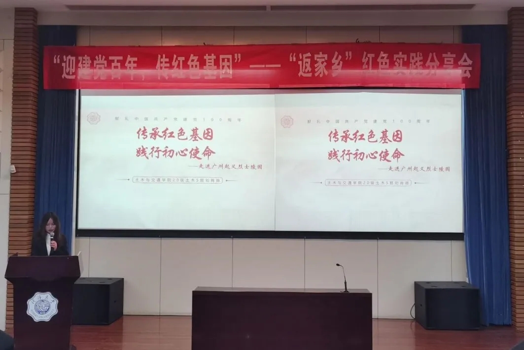 为进一步巩固实践成果,将活动过程演变为生动、深刻、持久、更有生命力的红色实践教育课,转化为喜迎建党百年、开展红色教育、传承红色基因的重要举措,引领广大青年学生坚定不移听党话、跟党走,土木与交通学院团委于2021年4月17日19:00在河海大学江宁会议中心举办了以“迎建党百年,传红色基因”为主题的“返家乡”红色实践分享会。本次分享会邀请了四位优秀实践团队的队长作为主讲人,土木与交通学院团委书记19级辅导员王璐老师及学院部分本科生参与了本次活动。