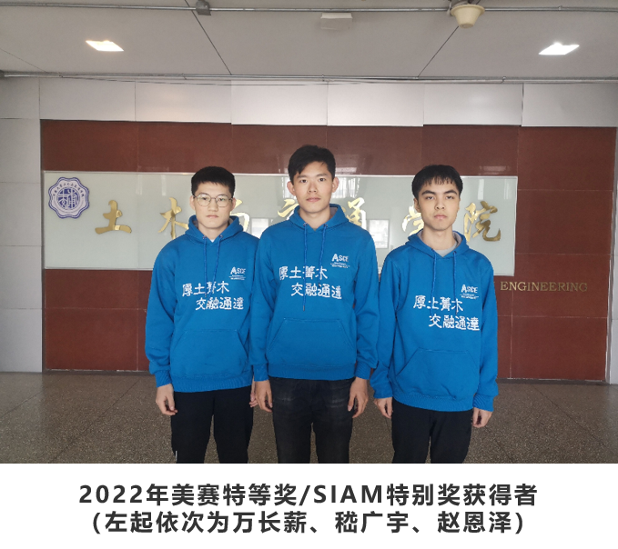 近日,2022年美国大学生数学建模竞赛结果公布,河海大学学子喜获佳绩。其中,由理学院丁根宏教授指导、我院2018级本科生嵇广宇、赵恩泽、万长薪3位同学组成的团队在全球超过2万7千多支队伍中脱颖而出,获得该赛事的最高奖项——特等奖(Outstanding Winner)(全球仅44项特等奖),并获得美国工业与应用数学学会特别奖(SIAM Award)(从特等奖中遴选,今年仅6项)。这是继我校在2021年美赛中首次获得特等奖之后,再次刷新最高获奖记录。