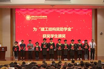 院党委汪建新书记宣读《关于公布第十届土木与交通学院“我最喜爱的班导师”和“我最喜爱的任课教师”评选结果的通知》,学院副院长周继凯教授宣读“建工结构奖助学金”获奖名单,学院副院长朱其志教授宣读“久大专项奖学金”获奖名单,学院副院长刘云副教授宣读“优秀毕业生”“优秀毕业研究生”“基层就业奖学金”获奖名单。