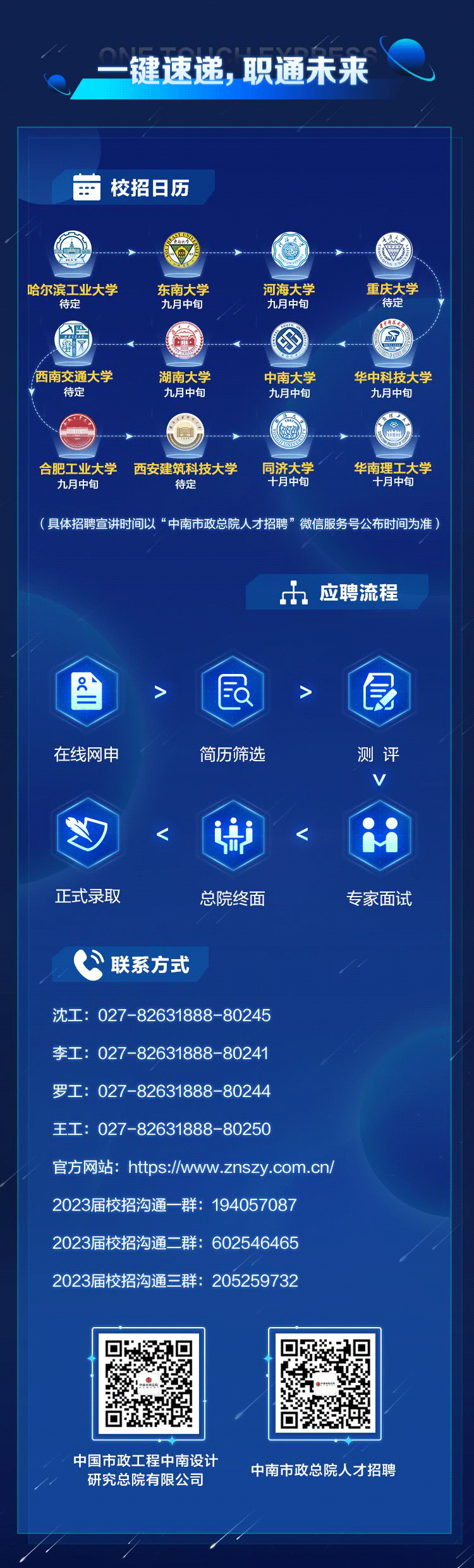 中国市政工程中南设计研究总院有限公司2023届校园招聘正式启动!