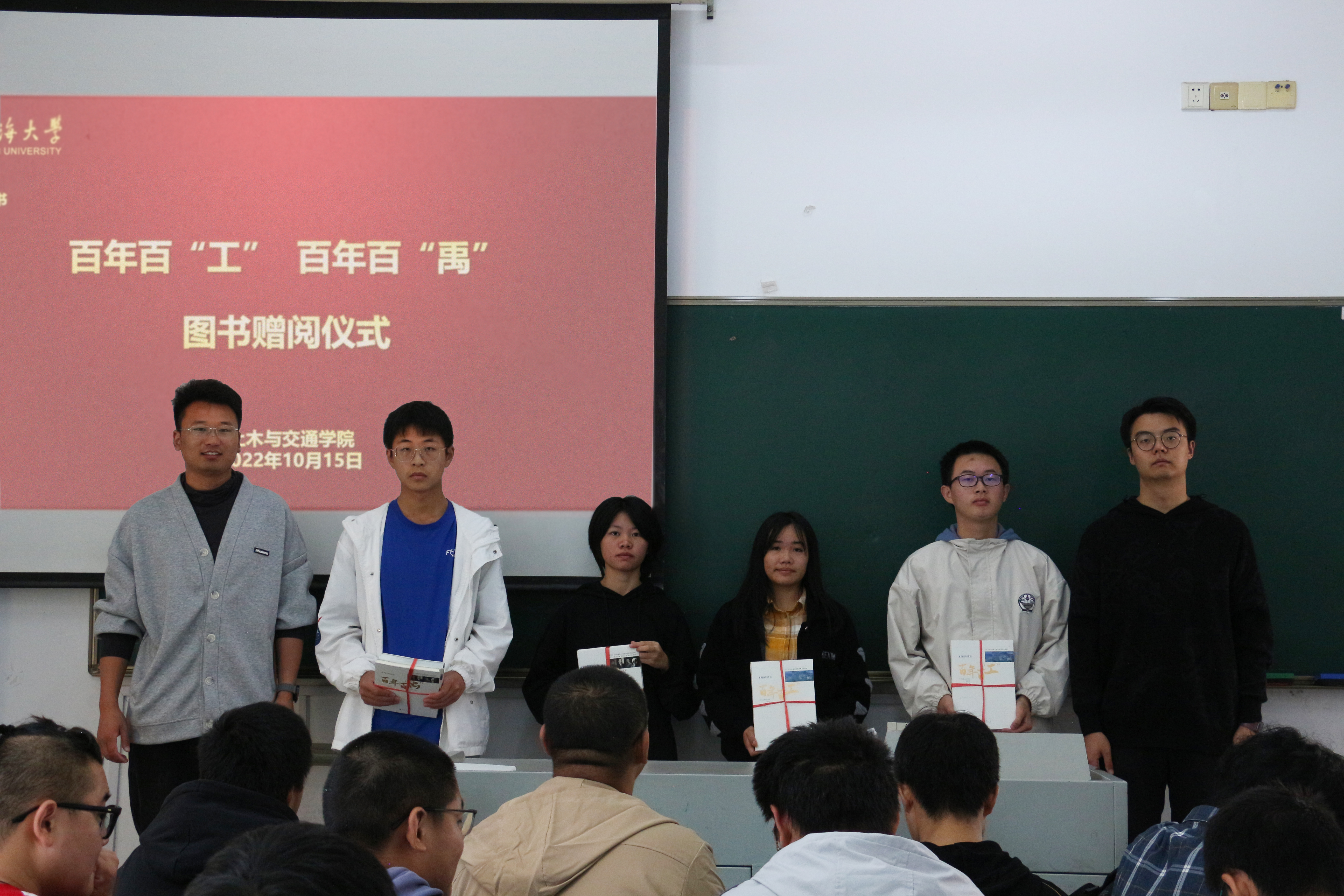 近日,河海大学资产经营有限公司党工委、河海大学出版社向我院240名2022级本科新生赠送《水利百年丛书》《百年百“工”》和《百年百“禹”(第一辑)》。2021级辅导员韩新禹、2022级辅导员高建相在江宁校区组织开展赠阅活动,2022级本科生代表参加本次活动。