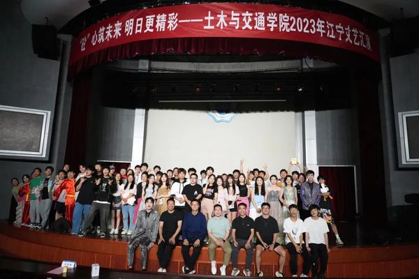 2023年6月7日太阳集团tyc151在河海大学江宁校区博学楼报告厅举办学院2023年江宁文艺汇演。河海大学外国语学院研究生辅导员陆雨老师、河海大学学生处社管中心蔡庆泽老师、土木与交通学院本科生2021级辅导员韩新禹老师、土木与交通学院本科生2022级辅导员高建相老师和土木与交通学院2021级、2022级同学共同观看此次演出。