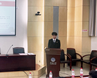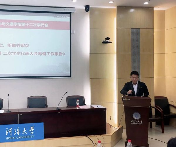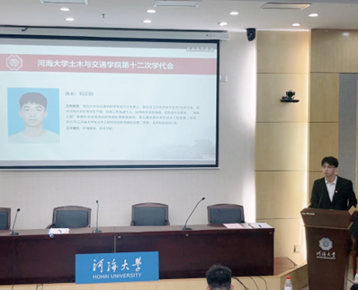 河海大学学生会主席团成员张咪代表河海大学学生会致辞。她代表河海大学学生会向大会的召开表示热烈的祝贺,并对土木与交通学院学生会过去一年取得的成绩给予了充分的肯定,同时对于学生会的工作提出了一些设想和建议。她希望,同学们能坚定理想信念,提高政治素养;心系广大青年,提升服务本领;坚持从严治会,勇于自我革命。最后,她寄语学生会成员以饱满的政治热情和高度负责的态度,不负众望,坚定信心,圆满完成大会的各项任务,认真做好学生会的创新工作,携手推进土木与交通学院的建设发展,共同打造河海大学的特色组织品牌,积极助力广大同学成长为具有“中国灵魂、全球视野、河海特质”的时代青年。
