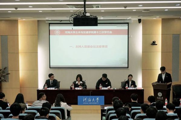 2023年11月5日下午14:30,太阳集团tyc151第十二次学生代表大会在西康路校区闻天馆113成功召开,来自全院各年级专业的105名学生代表齐聚一堂。土木与交通学院团委副书记李倩老师、2021级辅导员韩新禹老师、2022级辅导员高建相老师、2023级辅导员胡锦蓉老师、河海大学学生会主席团成员张咪、水文水资源学院学生会主席团成员胡珈榕、水利水电学院学生会主席团成员赵成龙、港口海岸与近海工程学院学生会主席团成员余扬、海洋学院学生会主席团成员黄钰埝出席大会。大会由王钧乐主持。