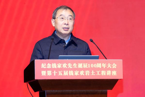 纪念大会结束后,举行了第十五届钱家欢岩土工程讲座,张建民院士作题为《城市浅埋结构非极限状态地震土压力评价》的主题报告。