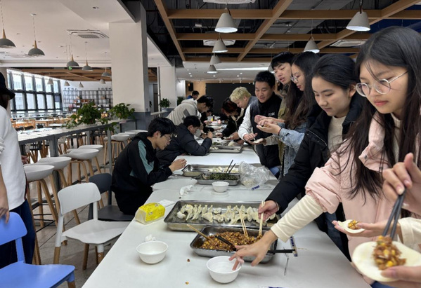 下午两点整,包饺子活动正式开始。同学们中既有经验丰富的包饺子能手,也有初次尝试的新手,大家互帮互助,相互学习,创造出属于他们的独特作品,每一个饺子都饱含着欢乐与温暖。