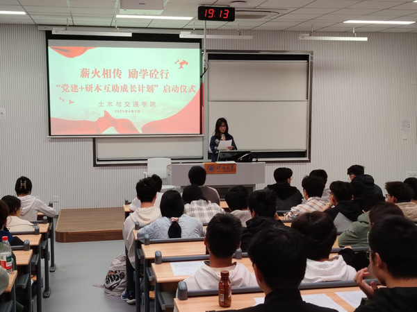 为进一步加强学院学风建设,助力学业困难学生养成良好学习习惯、提升学业成绩,发挥党员、入党积极分子红色先锋作用,推进“我为同学办实事”走深走实。2025年4月2日,土木与交通学院“党建+研本互助成长计划”启动仪式于河海大学金坛校区2号楼A213顺利召开。本次会议由土木与交通学院2023级本科生年级团支书杨天麟主持,土木与交通学院2023级辅导员胡锦蓉老师,研究生入党积极分子和结对同学参加了此次活动。