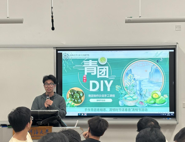 为传承中华传统文化,感受传统节日氛围,增进同学们对民俗文化的了解,2025年4月9日19:00,河海大学土木交通学院团委及学生会在常州新校区2号楼B107联合举办了以“手作青团,传承文化”为主题的青团制作活动,土木与交通学院23级部分本科生积极参与了此次活动。