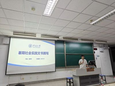 随后,三位学生代表依次分享实践经验。钟兴浩同学从立项答辩、团队分工、宣传投稿三方面提出建议,强调“选题需紧扣国家战略,策划案需突出创新性”,为学生们提供了社会实践的方向参考,让学生对暑期社会实践有了更加清晰的认知。