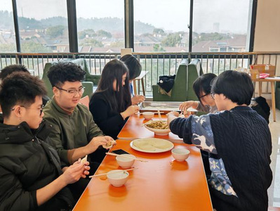 不久后,热气腾腾的饺子出锅分装,大家围坐在一起,品尝着亲手包的饺子,欣赏着互赠的对联与福字,分享着新年愿景,食堂内暖意融融、其乐融融。