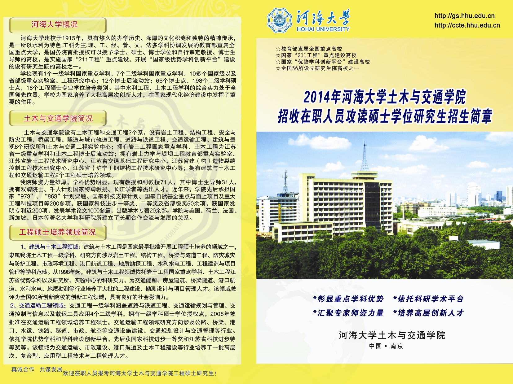 2014年太阳集团tyc151招收在职人员攻读硕士学位(非全日制工程硕士)招生简章