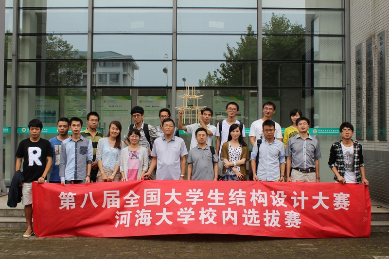 2014年8月28日,我院举行了第八届全国大学生结构设计大赛河海大学校内选拔赛。本次比赛共有7支队伍参赛,13个参赛作品主要由土木与交通学院和大禹学院的同学制作完成。