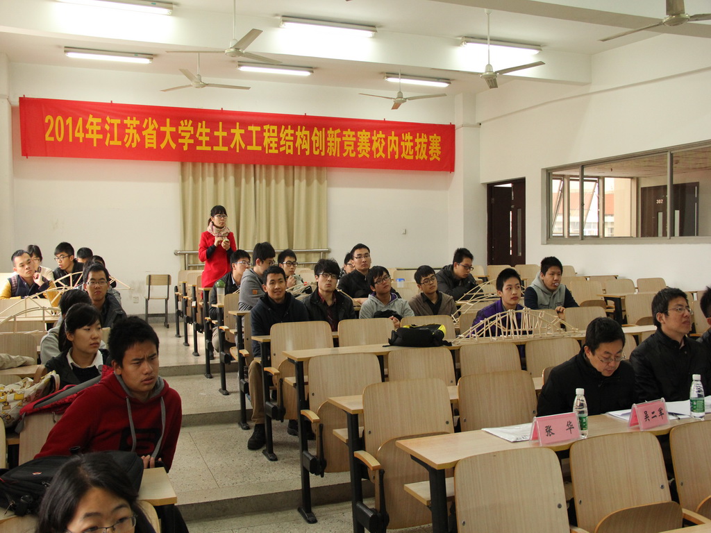 2014年11月28日,我院举行2014年江苏省大学生土木工程结构创新竞赛河海大学校内选拔赛。本次比赛共有18支队伍制作二十三个模型参加比赛。