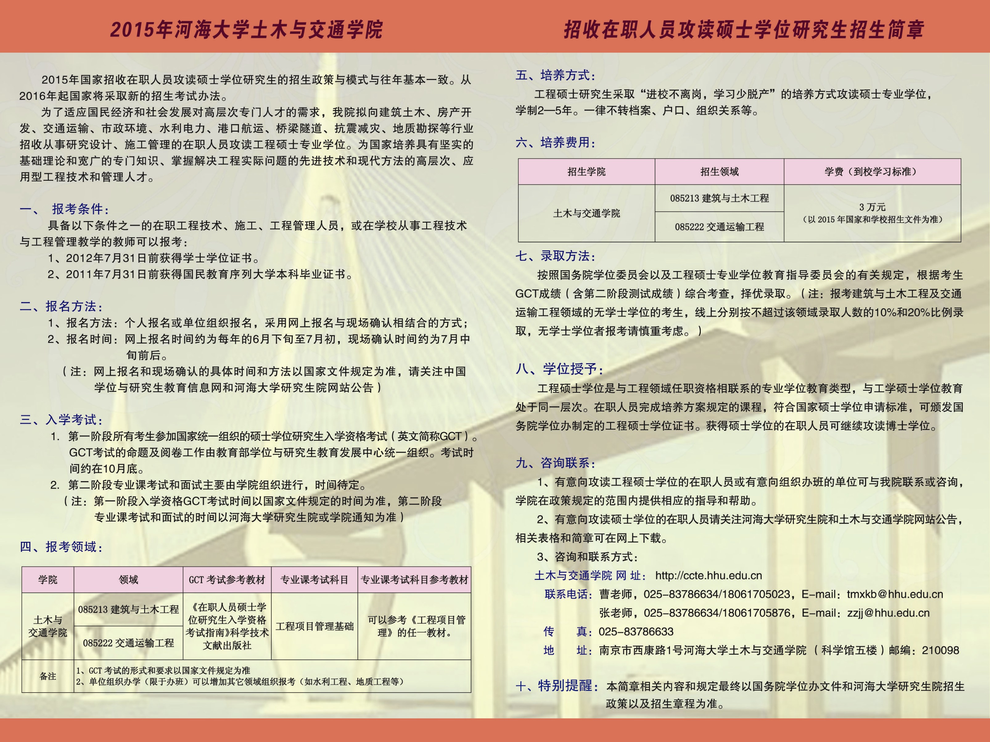 2015年河海大学土木院工程硕士单位办学预报名表.doc
