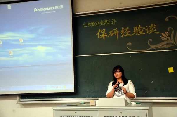 2015年4月28日晚,土木与交通学院“土木微讲堂”第八讲之保研经验谈在北教303正式开讲。本次土木微讲堂的主讲人为土木院2011级本科生马志东、毋佳玉、孔祥明、李倩、曾鹏、王孟。吴昊老师、王璐老师和2012级部分本科生参加了本次讲座。