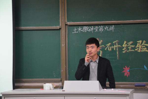 2015年5月11日晚,土木与交通学院“土木微讲堂”第十讲之考研经验谈在北教203正式开讲。本次土木微讲堂的主讲人为2011级土木工程专业张志恒,柯志强、杨睿和张琪,王璐老师和2012级部分本科生参加了本次讲座。