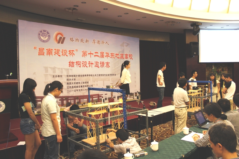 2015年5月28日至5月31日,第十二届华东地区高校结构设计邀请赛在南昌大学举办。在学院精心组织和指导教师辛勤辅导下,由我院土木工程专业本科生组建的两支代表队分获一等奖(一等奖第一名)和二等奖(二等奖第一名),总排名位列参赛高校第一,创土木与交通学院建院以来在该项赛事上的最好成绩。