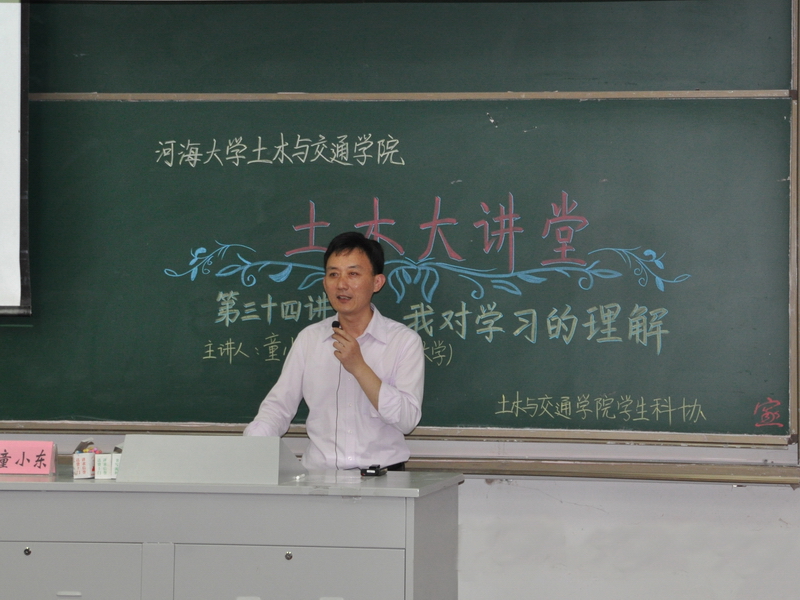 2015年10月20日下午14:00,由土木与交通学院主办,学院本科生科协承办的“土木大讲堂”第三十四讲“我对学习的理解”在本部水利馆101成功举办。本次讲座特邀东南大学土木工程学院副院长童小东教授作为主讲人。讲座由我院教学副院长沈扬教授主持,2013级辅导员丁小庆老师与土木2012和2013级部分同学参加了本次讲座。