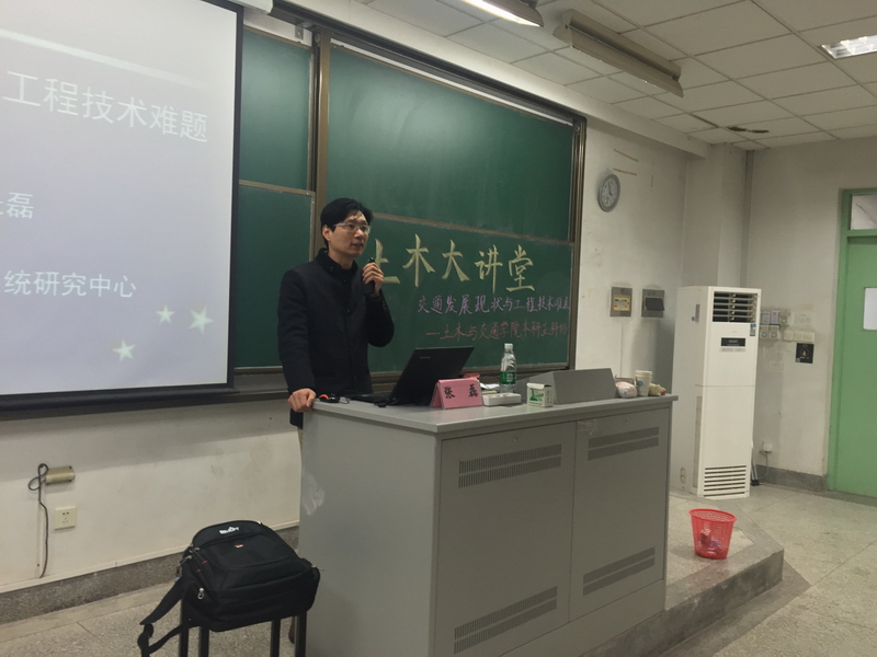 2015年11月17日16时,由土木与交通学院主办,院本科生科协承办的土木大讲堂第三十六讲在河海大学江宁校区致用楼117教室成功举办。本次大讲堂特邀东南大学博士生导师,东南大学优秀青年教师资助计划获得者,智能运输系统研究中心的张磊副教授,做题为“快速交通发展现状及工程技术难题”的报告。土木与交通学院交通系刘云副主任,2014级本科生辅导员张洁,2014级和2015级交通工程专业的本科生参加了本次讲座。