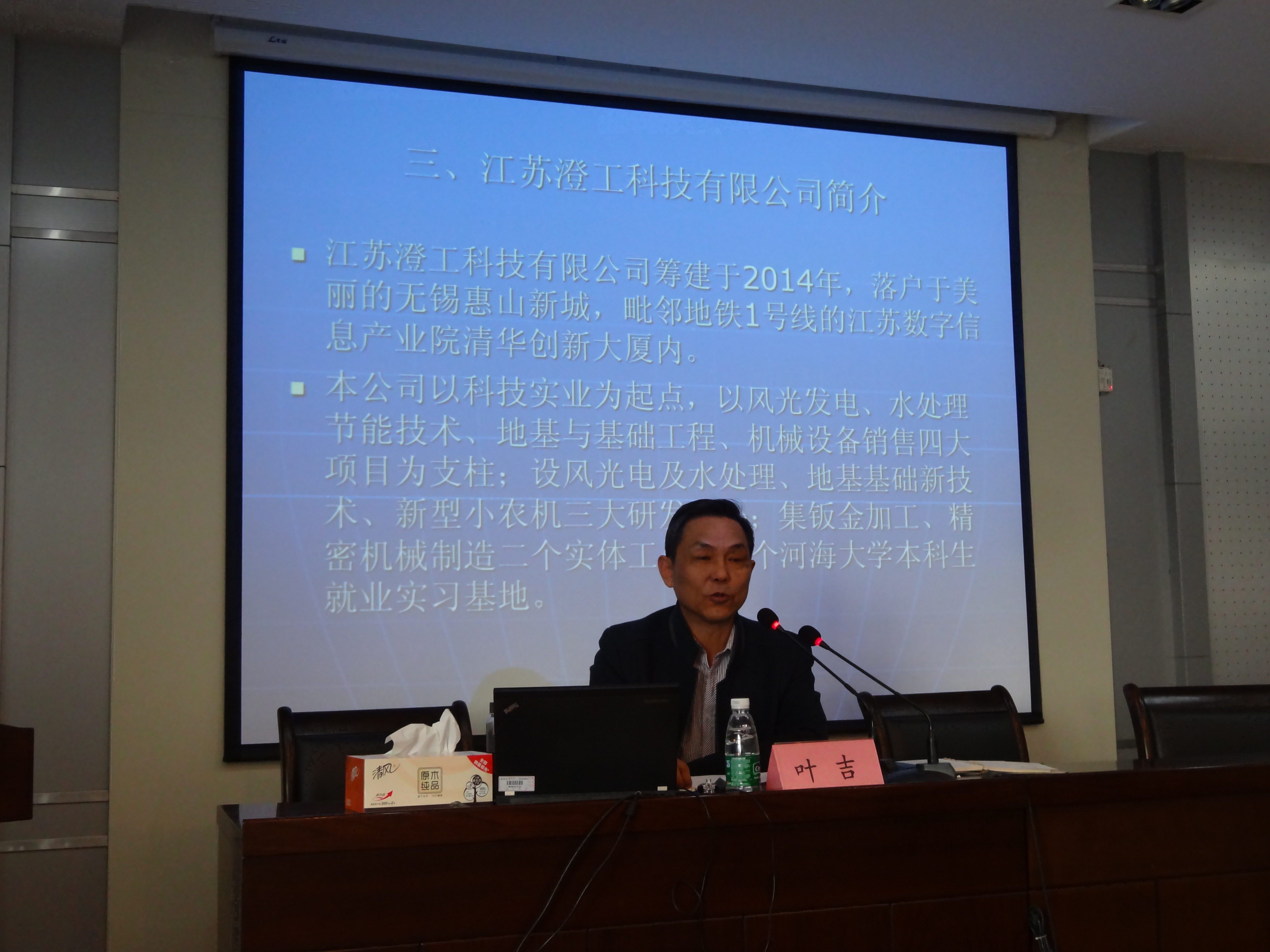 2016年3月10日下午,土木与交通学院于科学馆516举办了题为“地基处理新技术——软弱地基水气分离夯实法”的报告会。报告由江苏澄工科技有限公司总经理、岩土注册高级工程师叶吉主讲。土木院党委吴宝海书记主持报告会,高年级本科生和部分研究生同学参加了此次报告。