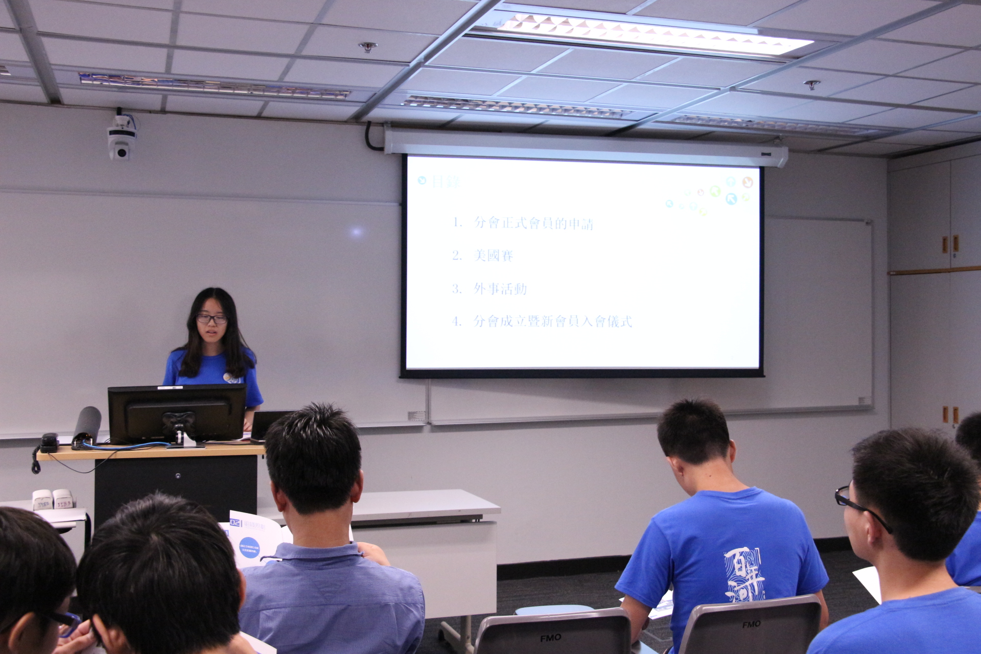 随后ASCE-ISG香港科技大学分会副主席李国轩同学向与会人员分享了香港科技大学分会近一年来所取得的工作成绩。他指出,香港科技大学分会的工作重心体现在社会服务上,即推动社会人士指导学生的职业生涯规划,学生继续服务社会。