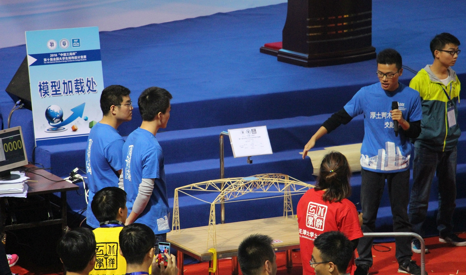 2016年10月12日至10月16日,第十届全国大学生结构设计竞赛在天津大学举行。在学院精心组织和指导教师(喻君)辛勤辅导下,由我院土木工程专业2014级本科生任兆鹏、徐文磊、徐夏佺组成的河海大学代表队喜获三等奖,连续第三年为河海土木专业在此赛中争得荣誉。