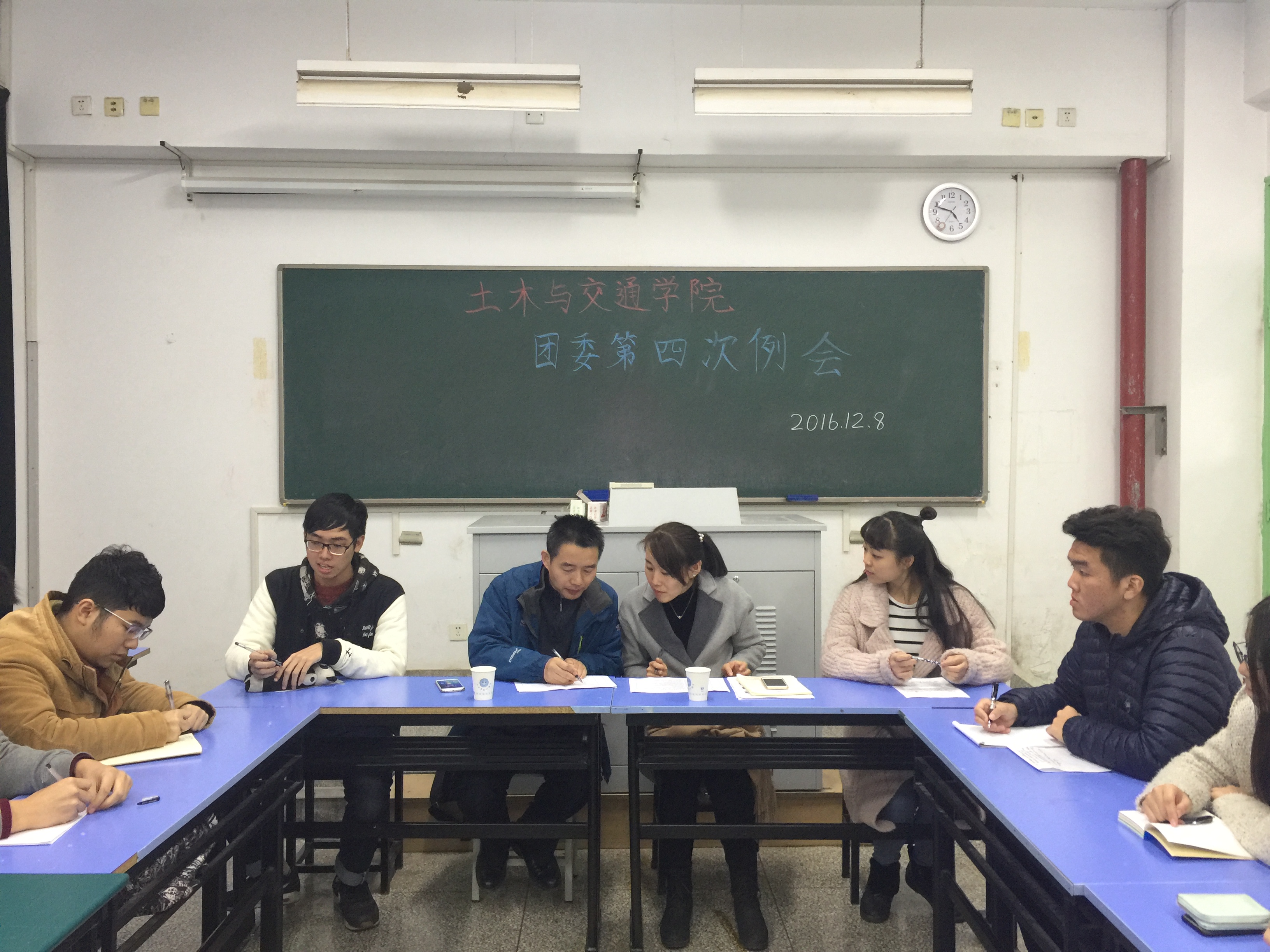 2016年12月8日16:40,土木与交通学院团委本学期第四次例会在致用308进行,学院党委书记吴宝海、15级辅导员王璐老师参加了本次会议。