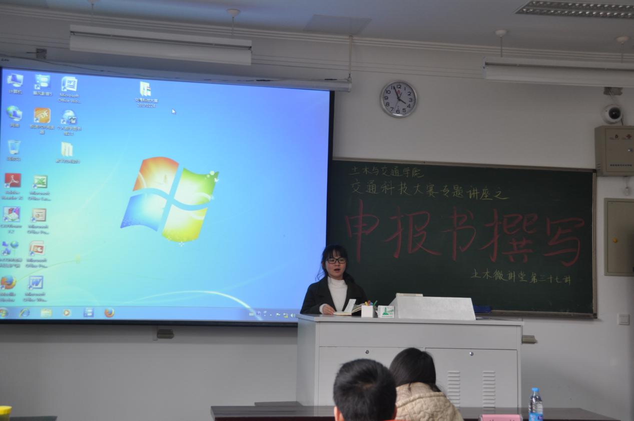 2017年2月23日下午15点50分,土木与交通学院土木微讲堂第三十七讲之“交通科技大赛专题讲座之申报书撰写”在我校西康路校区工程馆207成功举办。本次微讲堂邀请到了13级优秀本科生徐艳、陶莎两位同学作为主讲人,为同学们分享她们撰写申报书的经验。