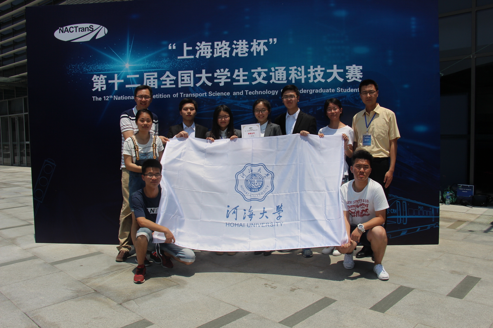 2017年5月27日-5月29日,第十二届全国大学生交通科技大赛决赛在同济大学举行。在学院精心组织和指导教师辛勤辅导下,由我院2014级交通工程专业本科生钱文雯、吴季恒、谭和清、林初染完成的作品“城市高架及道路交通事故逆向救援方案”(指导教师:杜牧青、李锐、张小丽)喜获一等奖。河海大学也成为近三届始终蝉联一等奖的唯一江苏高校。