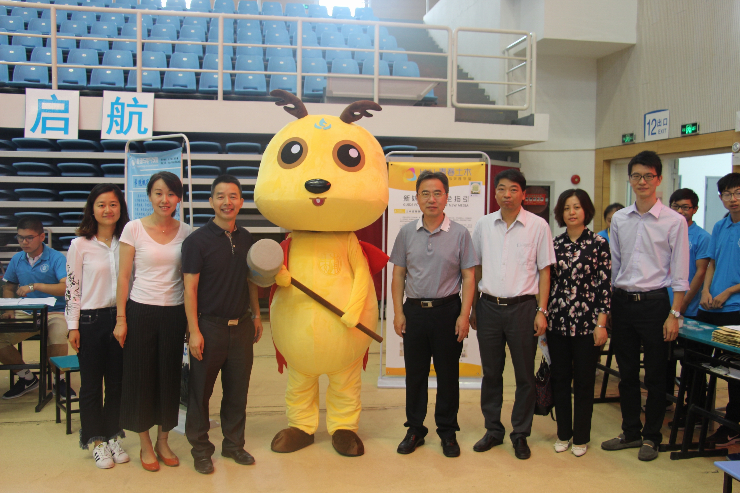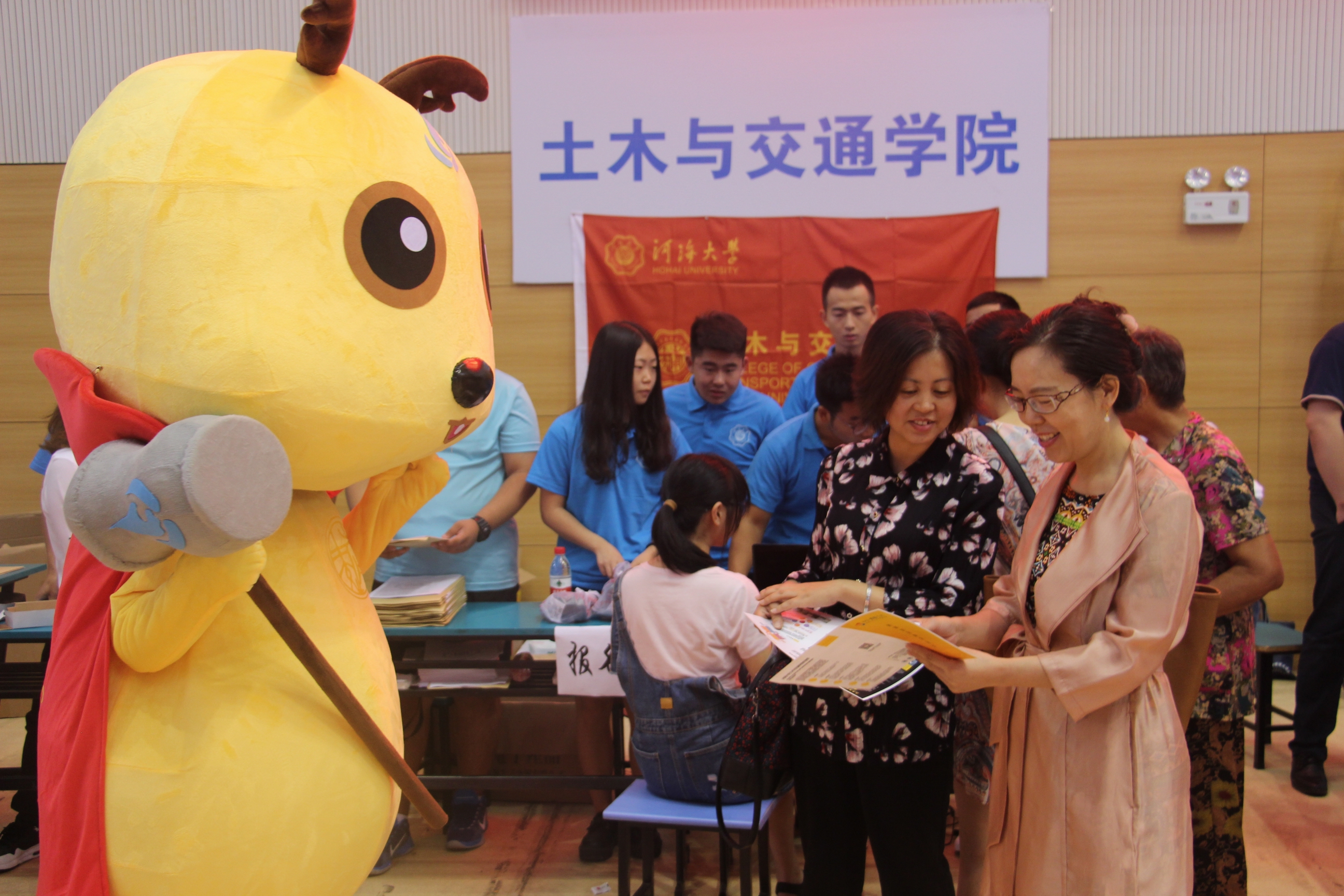 为使迎新工作顺利进行,学院提前制定了周全的计划,做好了全面的准备,并号召全院师生积极投身到迎新工作中去,以最饱满的热情迎接2017级新生。校党委书记唐洪武、校长徐辉、校党委副书记郭继超、副校长陈星莹、院长高玉峰、院党委书记吴宝海、党委副书记潘静深入迎新一线,亲临现场指导工作,慰问迎新工作点的同学们,亲切询问迎新工作的进度。土木院全体辅导员与学生志愿者并肩作战,很多2016级同学抽出时间报名参与到志愿服务新生的行列。从报道注册到宿舍登记,每一个环节都有志愿者为新生提供服务;雨丝纷飞,志愿者们依旧坚守在学校的各个路口,为新生的报道保驾护航;闷热难耐,志愿者们还是耐心地为新生们解疑答惑。在文体中心接待点,新生们还与土木院吉祥物小砼亲切互动,体味来自学院的热情与温暖,使他们更好地融入这个温馨的大家庭。