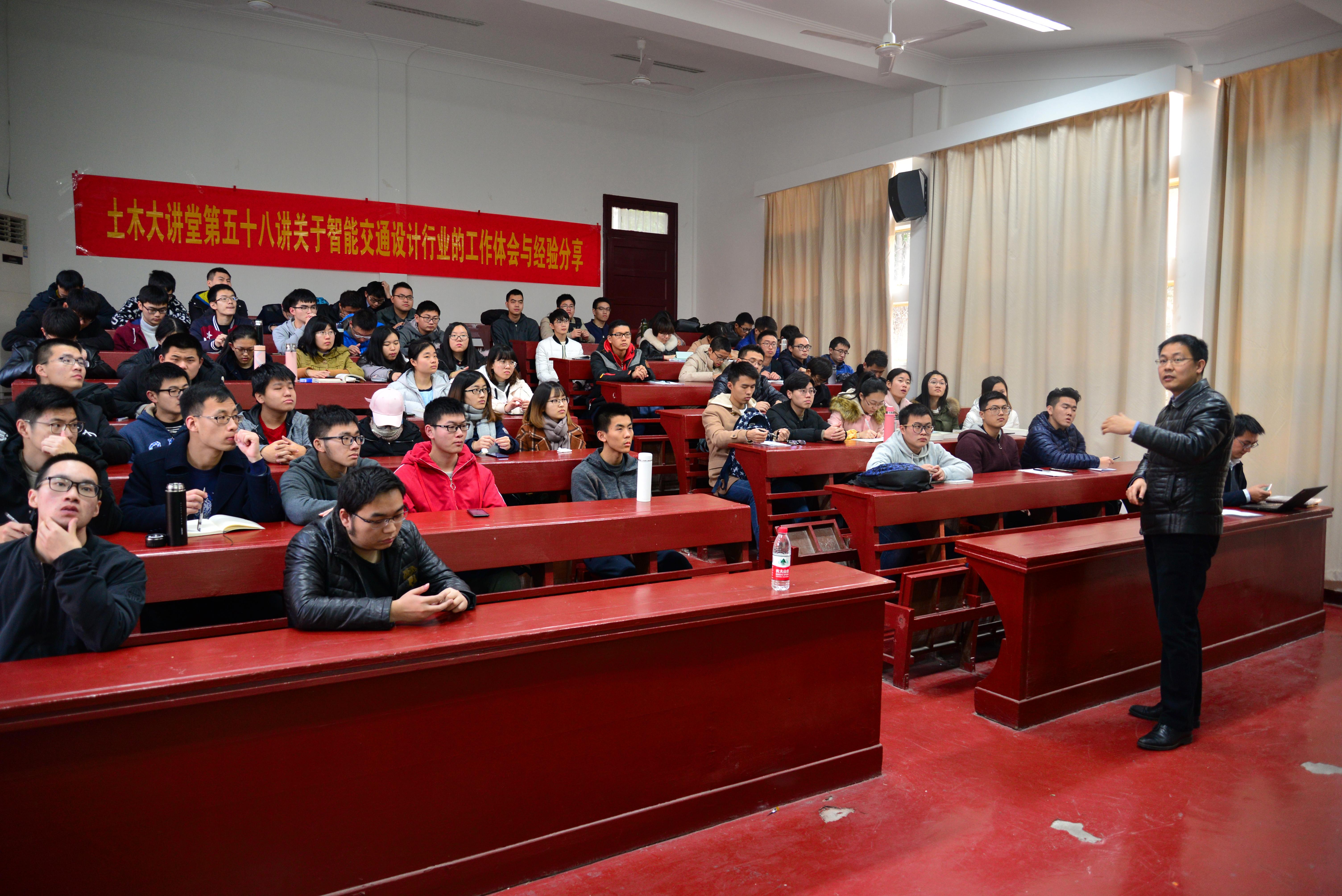 2017年12月11日,由土木与交通学院主办,学院本科生科协承办的土木大讲堂第五十八讲之“关于智能交通设计行业的工作体会与经验分享”在河海大学西康路校区成功举办。本次大讲堂邀请到了王维锋博士作为主讲人,王博士是现任交通运输部智能交通技术和设备交通运输行业研发中心常务副主任、中设集团智能交通设计研究中心主任,在智能交通设计领域有着丰富的经验。土木院沈扬副院长、交通系李锐副主任出席了本次讲座,2014级、2015级交通专业同学聆听了本次讲座。