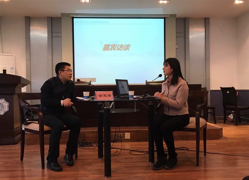 2017年12月28日下午4:00,由我院研究生科协主办的“非常近距离——与大咖面对面,畅谈梦想,感悟人生”访谈活动在科学馆516隆重举行。本期访谈嘉宾为江苏省社科联科研中心主任、省委组织部专家成员徐军海。