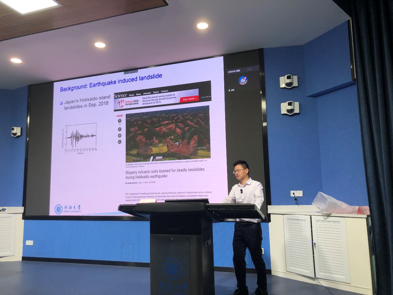 上午的首场授课专家是浙江大学建筑工程学院詹良通教授,他的授课题目是《深圳光明新区渣土场特大型滑坡事故成因及启示》。詹良通教授从深圳光明新区渣土场滑坡失稳滑动机理、该次事故造成如此巨大的影响的原因、是否可用饱和土力学理论及非饱和土力学理论来解释这次事故以及本次事故的启示等四个方面进行展开。詹教授的报告精彩绝伦,深深的吸引了众学子的热情互动,针对学员们提出的气体对滑坡有什么影响、渣土离心机试验中,地下水如何在离心机中考虑等专业问题,詹教授做出了耐心、详细的回答,令学员们受益匪浅,赢取了热烈掌声。